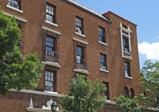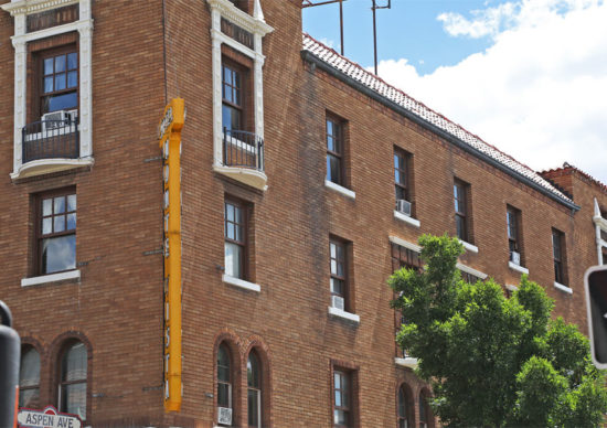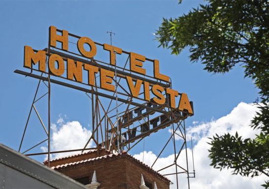 This 1927 four story, brick Monte Vista Hotel is one of the few remaining buildings with the Spanish Colonial style of architecture. It is in the Railroad Addition Historic District in downtown Flagstaff (National Register, 1982).