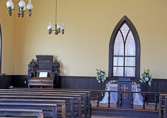 Along with a new structure, this church also had a new name: Community Church. They found a way to put this exhibit to work. Community Church is available for weddings throughout the year.