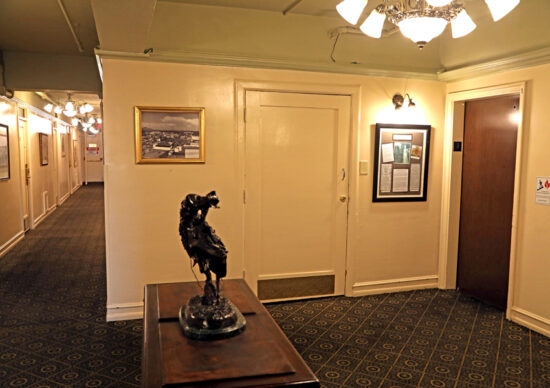 Tom and I stayed here on our road trip the summer of 2019. Wow! the inside is as historic as the decorative outside. The lobby has a 1928 style decor. The lobby has travertine tile flooring throughout. The lobby still has “its carved plaster crown moldings, Austrian crystal chandeliers, and wall sconces, and a copper-clad elevator doors and moldings.”