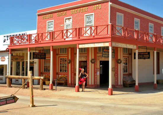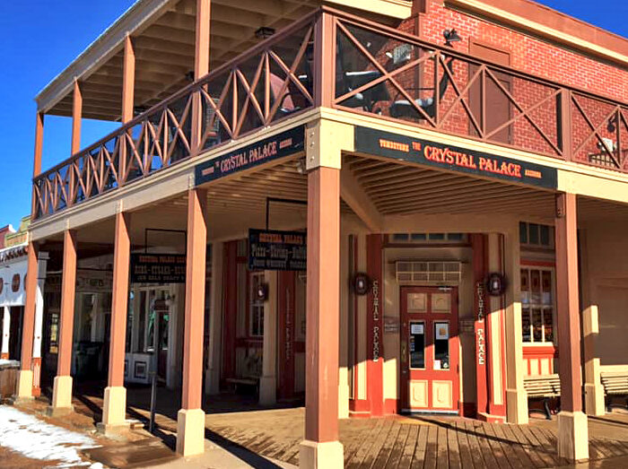 Crystal Palace Saloon sits on E Allen St., on the corner of E Allen Street and N. 5th Street, in the heart of the old Red Light District, now in historic downtown of Tombstone. It is only a block and a half from the OK Corral and not far from other Tombstone attractions.