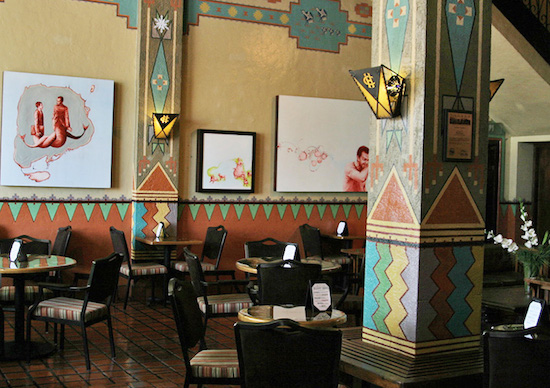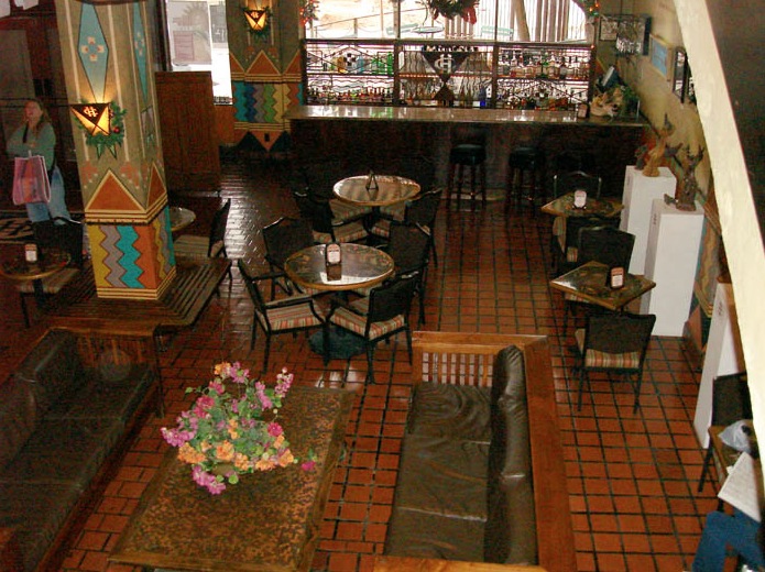 Tom and I walked into this vintage, two story, slightly spooky, spirit-supervised/haunted brick building. Its wonderful historic decor was a combination of Southwest Deco and a ’20s & ’30s fest! In the lounge area, a red-carpeted staircase leads up to the second floor. It is truly like stepping back in time…