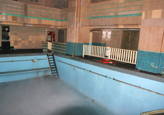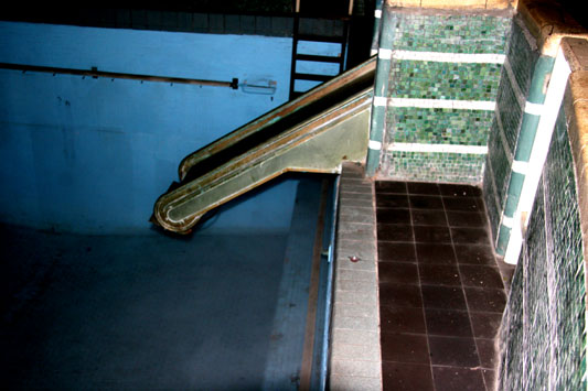 “The liner featured two indoor swimming pools; (first and second class), beauty salons, libraries, children’s nurseries for all three classes, a music studio and lecture hall, telephone connectivity to anywhere in the world, outdoor paddle tennis courts, and dog kennels.” At some point in history, the second class swimming pool was turned into a theater area.