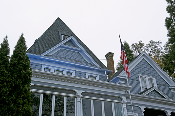 One of the Elk Club’s officers who did’t believe in spirits, had to go back to the mansion to get some papers he had left in his office on the second floor. No one was there except the house cat and himself. As he climbed the central staircase, he felt a cool breeze come down to his step, and felt a gentle cool hand touch his upper arm. The cat hissed and ran away. Needless to say, he became a believer and went about his quest without delay.