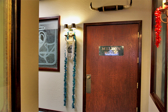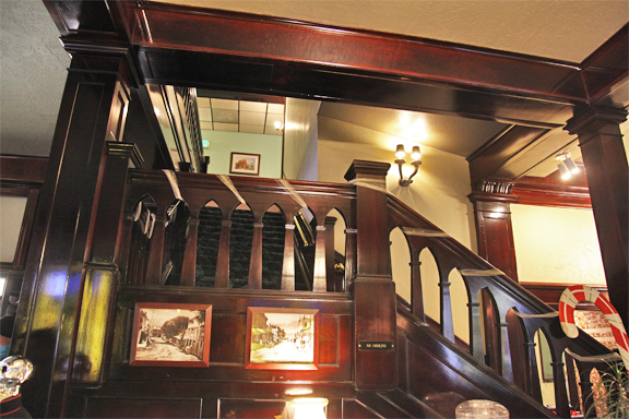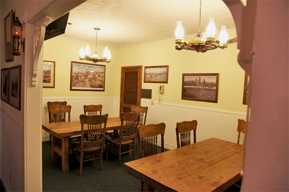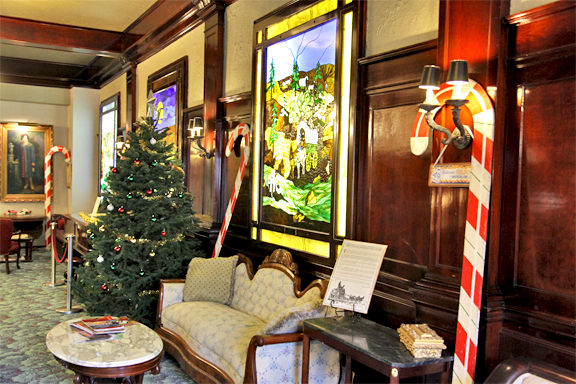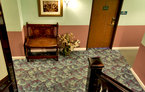 We noticed that the inside hotel lobby is truly a blast from the past, with the original check-in area, and beautiful wood work every where. The grand banquet and social event room is in the back of the first floor. The 1857 grand staircase leads up to the other floors. The original elevator still works but only can hold two people at a time.