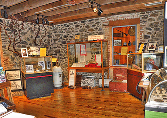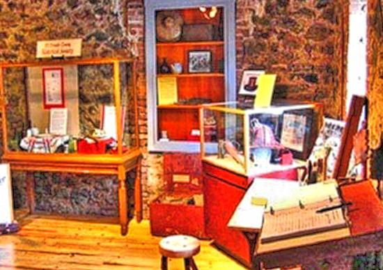 The Fountain-Tallman Soda Works Museum building was built to last the ages. The stone and brick Fountain-Tallman Soda Works building is a “thirty by twenty foot two story” rectangular building made of slate and the native stone serpentine; both cut from the hill slope right behind the structure.”
