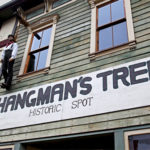 A newly restored male mannequin dressed in Gold Rush era clothes hanging by a hangman’s noose from the second story window; something you don’t see everyday. It hangs near the place where Placerville’s main hanging tree once stood; perhaps as a reminder of Placerville’s past….MORE