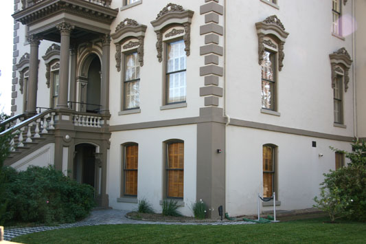 There is an explanation for this! The original architect, built a 2 story, 4,000 square ft upscale home in the Renaissance Revival style, popular before the Civil War in 1856, for city councilman and successful merchant Shelton Fogus. Fogus sold this mansion to Governor-elect Leland Stanford in 1862, changing its future for the good, because of the kind of person Leland Stanford was.