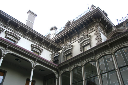 Looking at the front of this mansion, architectural enthusiasts may notice that the second and third floors are designed in the Renaissance Revival style, while the first and fourth floor are designed in the French second Revival style, complete with a Mansard Roof! Huh? You may wonder what they were smoking or drinking in the 19th century.