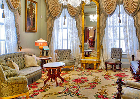“(The mansion) contains 44 rooms, all most elaborately and luxuriously furnished and fitted up. Good taste and cultured imaginations have been exhausted in furnishing the establishment. Magnificent and costly furniture in every room; lace curtains of the finest fabric; carpets that receive with noiseless tread the footfall, frescoes beautiful in design and exquisite in artistic perfection adorn the walls and ceiling.”