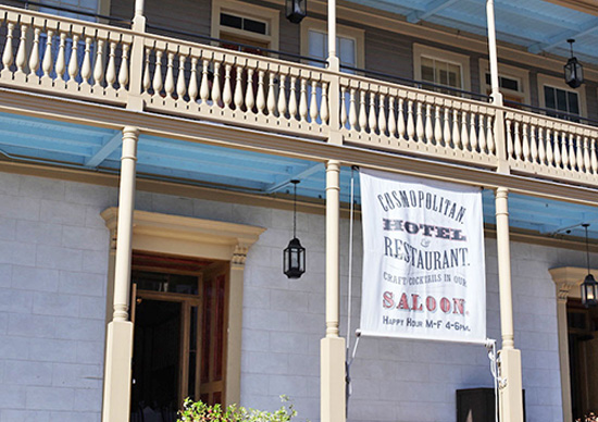 The Cosmopolitan Hotel and Restaurant reopened for business in 2010, thanks to a “three-year, multi-million dollar restoration project, overseen by the state of California and the hotel’s new proprietor, Chuck Ross of Old Town Family Hospitality Corp.”