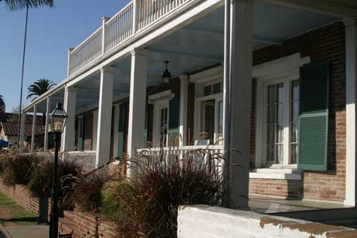 After the County Courthouse and its records moved to the New Town San Diego, in 1871, Thomas Whaley moved forward and connected the former granary and courtroom space to the newer private home structure. Perhaps he had soured on renting it out to commercial business. Part of this renovation was changing the windows, doors and front portico.