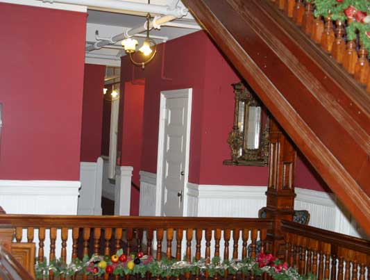 The Library – Can be visited by going through the elegant French doors located at the north end of the parlor. It is described as a comfortable room which has Victorian antiques, a 150 year old bar and lovely oil paintings hanging on the walls. The wood-burning fireplace is the “centerpiece” of this room.