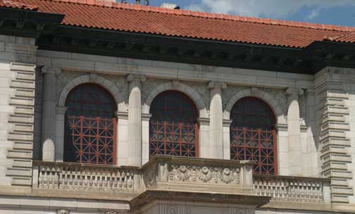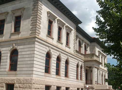 The building that the Colorado Springs Pioneer Museum now calls home is the restored 1903 El Paso County Courthouse which is described as an “imposing gray granite and ornamental concrete block” structure designed by local architect August J. Smith who used the Second Renaissance Revival style in his plans. This two story, solidly built structure, with a basement, has “distinct horizontal divisions, with each floor having different window sizes, shapes and surrounds.” The crowning feature of this government building has got to be the ornate, domed clock tower.
