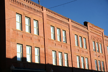 This 1896, handsome, 3 story brick building was built to house commercial enterprises, starting with the fancy brickwork, and display windows on the outside. The building features rock-faced corner stones, a recessed center entryway, and fabulous, decorative molding.
