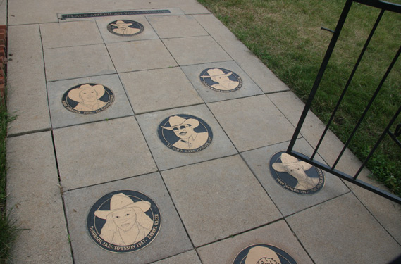 It has a spacious back grass area, and a front lawn area, that has memorial metal circular plaques, with the likeness of black cowboys and cowgirls, stage coach drivers, and champions of rodeo contests. There is a bronze memorial to Dr. Justina Ford, the first black female doctor in Colorado.