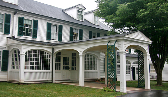 WOW! Tom and I were quite impressed to find this grand estate on Mountain Road. What a beautiful,Colonial Revival-style, well-designed, expansive mansion, with the classic veranda, complete with columns, over-looking green fields; the nearby river, and a glorious view of Farmington Valley. Sharon Dunlap Smith, in her book, Theodate Pope Riddle: Her Life and Architecture; (Chapter 4), gives a great sketch of the home itself, built up the knoll, not far from Theodate’s own home, on High St…