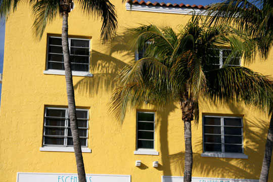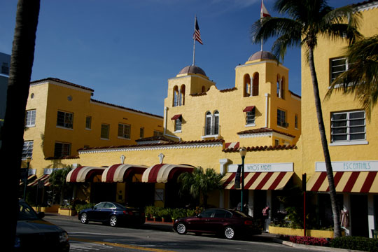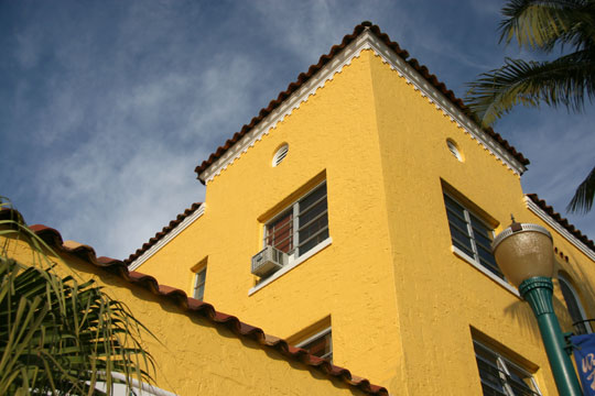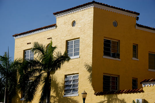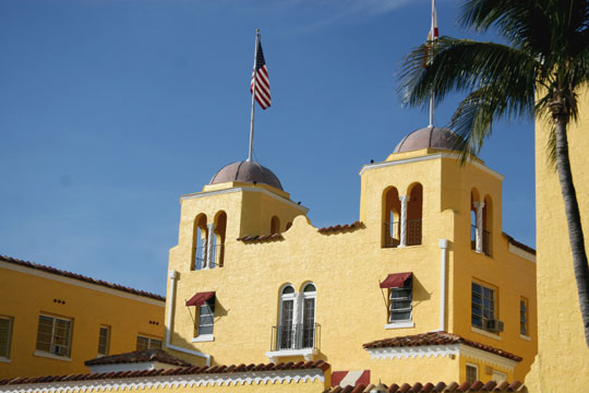 The Colony Hotel of Delray Beach really stands out on East Atlantic Avenue and is a beautiful structure to behold. A prominent example of Florida Mediterranean architecture, it is a three storied, bright yellow building, with two domed towers, which all matches the hotel’s striped yellow and red awnings on the windows.