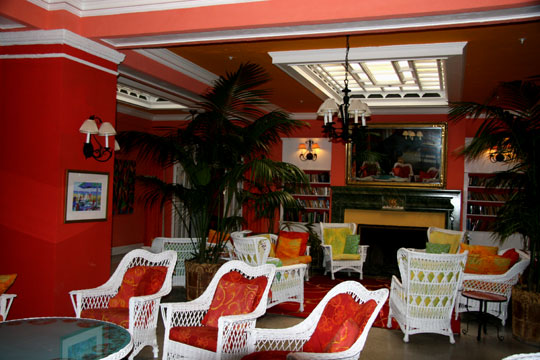 Walking into the front patio and lobby, is like stepping back to the 1920s. Much of the original furnishings have been restored on the first floor as well as the guest rooms. Such relics as the original wicker furniture, the original elevator, iron chandeliers and candelabras, as well as the arched french doors, the fire places and the beautiful skylight in the lobby sure reminds one of the 1920s and ’30s. Hardwood floors are found throughout the hotel.