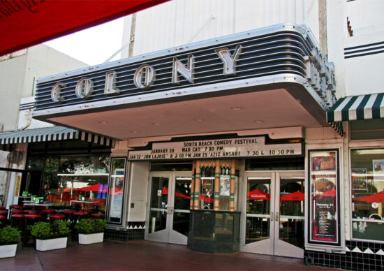 The Colony Theater can be found on the corner of Lincoln Road and Lenox Avenue