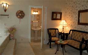 One of the places Inez liked to hang out was her old room, now called Inez’s Suite, and is located on the third floor. It is quite a nice room now, with a queen size antique brass bed, and an elegant sitting area. The room also has a large, white-tiled deck with a Jacuzzi spa for two under leaded glass windows, handmade leaded glass lighting fixtures, with a full bath and shower, robes and a stereo. Inez should be very pleased!