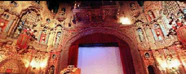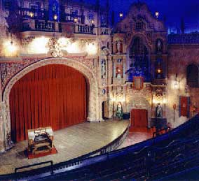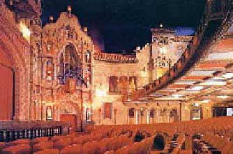 This large theater seats 1500 people, has a balcony, a stage, an orchestra pit and has a “Mighty Wurlitzer” organ. On the right organ grill, is a peacock figurine, which is John Eberson’s own trademark.