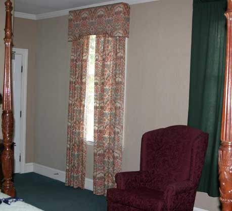 After checking in, we climbed up an interestingly old staircase which starts in the middle of the first floor, against the wall up to the second floor. There is a hallway which runs underneath some windows which leads to room 204. There is a life-size female mannequin dressed in the 1800s dress which is looking out the window to the entertainment of the nightly ghost tours who walk through the neighborhood. Some guests like to scare the tours who stop in front of this building, by making her move, according to the log found on the table next to the bed. Room 204 has a fireplace, some lovely reproductions of 1800s furniture and a nice view of the street below.