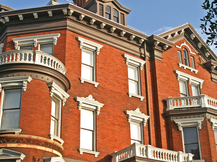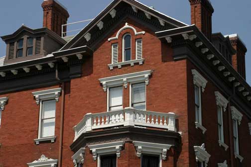 The William Kehoe Historic Inn is a huge, four story, 1892 Victorian; basically Renaissance Revival mansion which also has a blend of other architectural styles creating a truly glorious mansion! Nice touches were added such as “Corinthian columns, decorative use of red brick and terra cotta moldings, and Italianate ‘eyebrows’.” Its most distinctive and unique feature is the “exclusive” use of cast iron for the exterior trim.