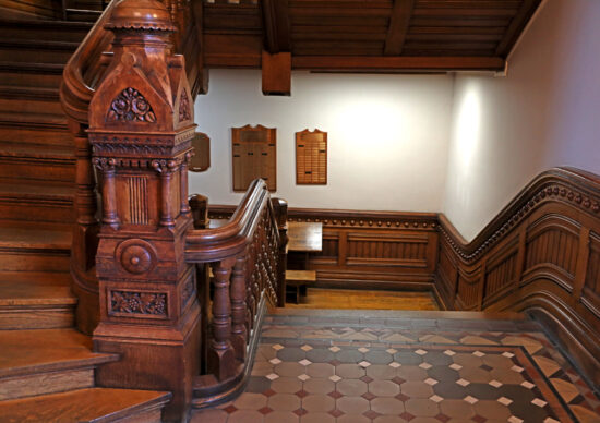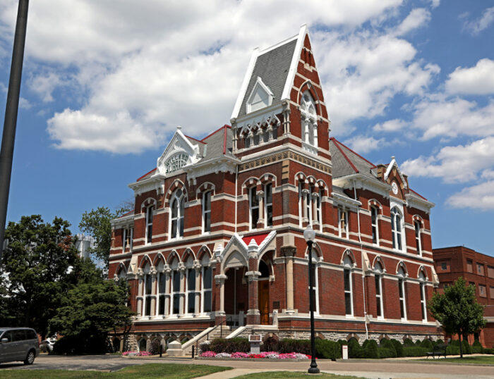 Described as the oldest working library in Indiana, the Willard Library is an 1885, two story brick building. Mr. Willard Carpenter, who donated the land for the library, and financed its construction, had great, artistic taste! Outside, the library is trimmed in stone, showcases Italian Gothic architecture, and has a standard Victorian corner tower. Inside, the library’s ceilings are high. The windows are large because before electricity was invented by Edison, they used to hang kerosene lamps in them, to provide light for the library’s patrons.