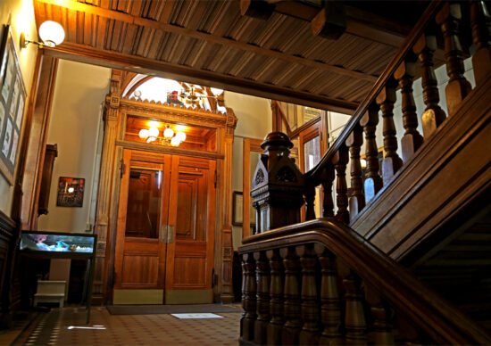 On the top floor of the library, the door opened and shut, all by itself, during a women’s meeting being held there. After feeling uneasy about this incident, the women decided to meet somewhere else.