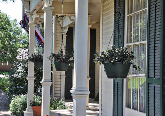 By 1870, the size of the house had been doubled with the addition of another kitchen, library, dining room and parlor. Another entrance to the house was added, from which the family took advantage of a black walnut staircase leading to six more rooms. Porches were added to the east and south sides of the house.