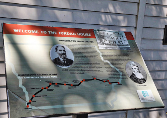 Jordan joined the Methodist Church, which supported anti-slavery efforts, and became the Head conductor of Polk County’s Underground Railroad, hiding slaves himself as well, who came through Iowa, on their way for freedom in Canada. Slaves typically hid in the barns, out-buildings, and the fields.