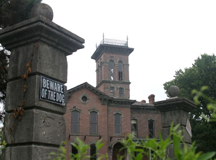 Being a mansion with a spooky appearance, with no one living inside of it, has attracted vandals, and people breaking in, to look around. This has been a real problem. Keeping a caretaker employed here has also been a challenge because the caretaker had his hands full keeping people off the property, until the 8 foot mother of all fences which surrounds the property was installed, which has been a big help in slowing down/stopping trespassers.