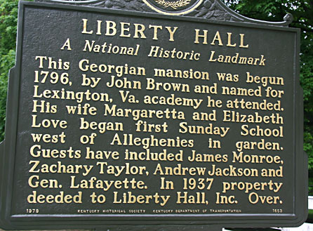 The Browns entertained and hosted the elite of American society and important political friends and dignitaries. The 1819 guest list included: President James Monroe, Col. Zachary Taylor, Col. Andrew Jackson, General Lafayette and Aaron Burr. In later years, William Harrison and Theodore Roosevelt also were guests at Liberty Hall.