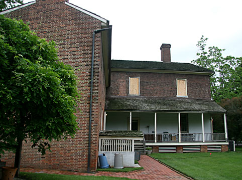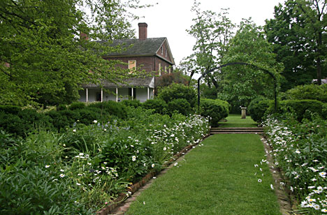 Liberty Hall was built by Senator John Brown, in the frontier town of Frankfort, Kentucky, in 1796, part of a four acre estate. It sits just above the Kentucky River. It’s glorious gardens roll down the hill and come up to the edge of the river itself, right up to the previously Kentucky wilderness. It is described as being “an exquisite example of 18th century Georgian architecture.” The structural plans of this fine mansion were designed and drawn up by Thomas Jefferson himself. Senator Brown had studied law in Jefferson’s office. Liberty Hall was built of fine, made-on-site bricks, with the flooring, rafters and framing being made of fine hardwood, that was dried for over two years. The inside decorum reflected Mrs. Brown’s desire to bring refinement and culture, that she missed from East coast living, to this rustic, frontier place. Such niceties as window glass, mirrors, brass door handles and locks, silk fabrics, fine furniture from the East coast, and lovely antiques from France were brought down the river by boat.