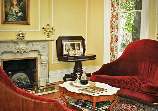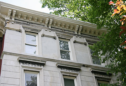 Decor from the past includes 14 foot ceiling rooms, lovely hardwood/parquet floors, with 10-foot doors and windows to match, and some nice antique furniture. Also, decorative, Italianate plaster moldings and huge, hand-carved Italian marble fireplaces add so much to the ambiance of the place. A lovely wooden staircase connects the floors to the main entrance hall.