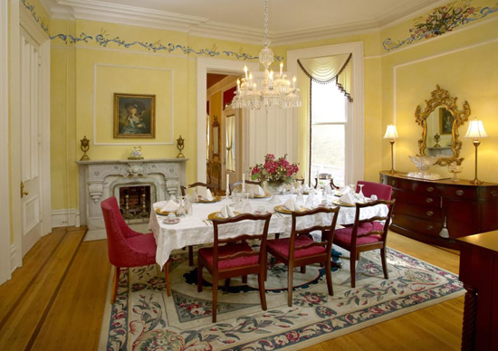 Found in this three storied, elegant, grand dame of mansions, are the usual public area rooms seen in Victorian abodes, plus 10 bedrooms, that feature all the bells and whistles expected, both in a well-to do 19th century mansion and present day accommodations. Guests of this present day Bed and Breakfast get to enjoy the decor from the past as well as some modernizations expected in a present day, high class Bed and Breakfast.