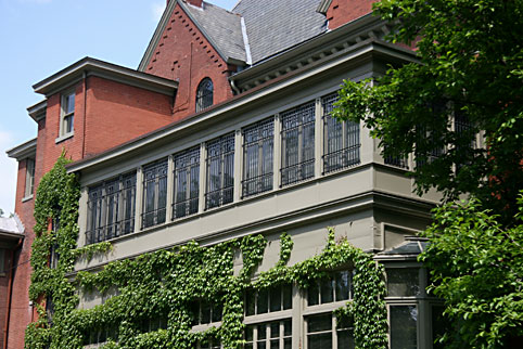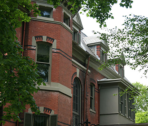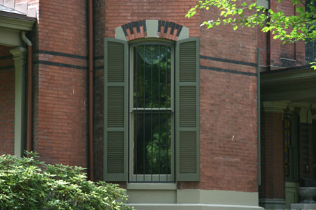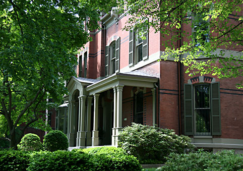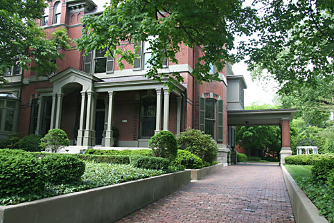 WOW! This glorious, three story, immense, brick mansion has a grand presence, sitting on its huge lot, in pristine condition, surrounded by its beautifully landscaped grounds, which also sports a patriotic horse statue. (A variety of painted horse statues are seen throughout the city of Louisville as of 2008.) When a law firm buys a property, it usually is looking pretty good by the time the office opens and is established, which is fortunate for the purchased old mansion/house/building. This was the case for the JP Speed House, which is in fine shape, but not open for public viewing.