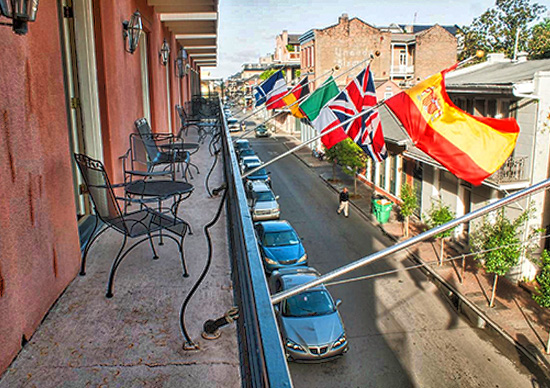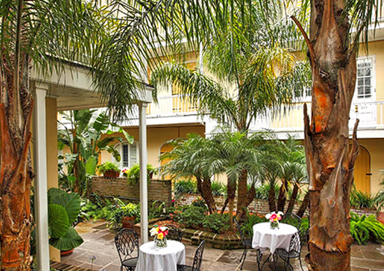 Early 19th century Herman Townhouse; which is located just across from the main hotel structure on Dauphine Street. It was restored in 1991 to its original splendor, uncovering its hidden beauty covered up by modern walls. The Herman Townhouse has fourteen, decent-sized guest rooms with a Jacuzzi, tub and shower. It is said to be much quieter and also has its own lovely courtyard. Rooms around the Herman Townhouse Courtyard have “two balconies complete with plantation shutter doors out to a balcony with a quaint little wrought iron table and chair set for two that overlooks Dauphine Street.”