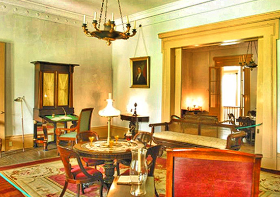 In 1840, in the middle of the antebellum period (1830-1862), family descendants, Charles’ granddaughter, Louise and her husband Judge Pierre remodeled their plantation home to reflect the popular Greek Revival period. They modernized and refined Destrehan Manor’s appearance by covering up the original columns with brick Doric columns, adding curving staircases to the other floors, constructed a curving rear walls and plastered the then exposed ceiling beams, and changing and adding the capitals and moldings, mantels and door surrounds.