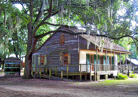 Destrehan Manor was built with hand-hewn cypress timbers. The insulation in the walls was called bousillage, made up of a blend of horsehair and Spanish moss.