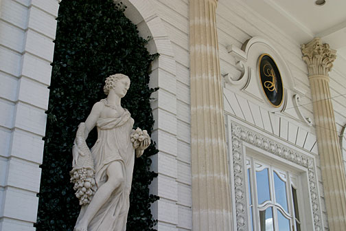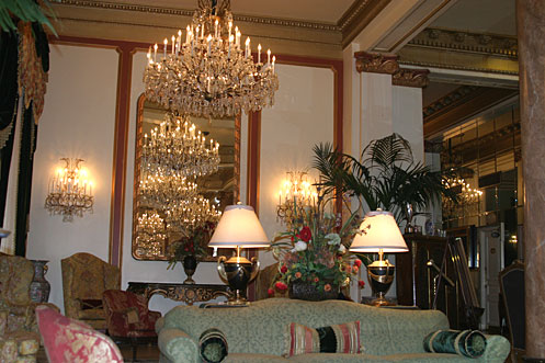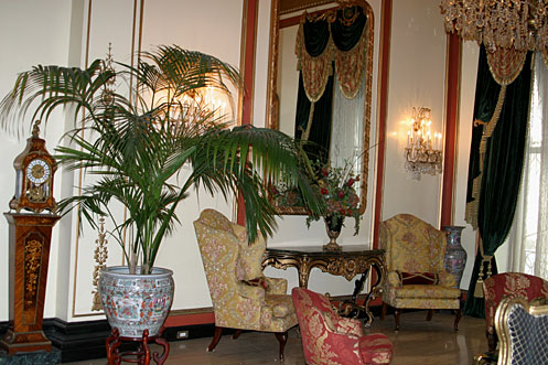 Crystal chandeliers from Czechoslovakia, marble floors from several locations around Europe, marble railings, imported from France, that once graced the lobby of the Parisian Grand Hotel. Spectacular Italian columns and statues were bought to grace the exterior, and fine art and antiques from the world were added to the decor, much to the pleasure of its guests. All the modern conveniences expected in a 4 star hotel can be found here.