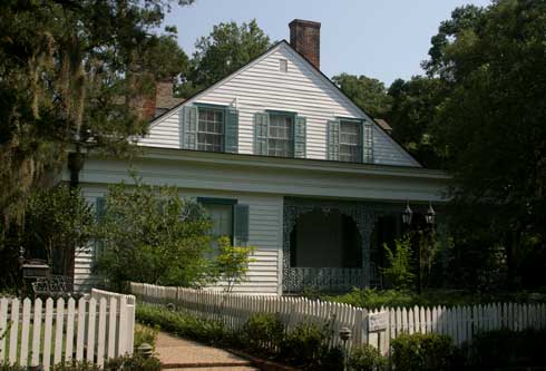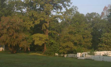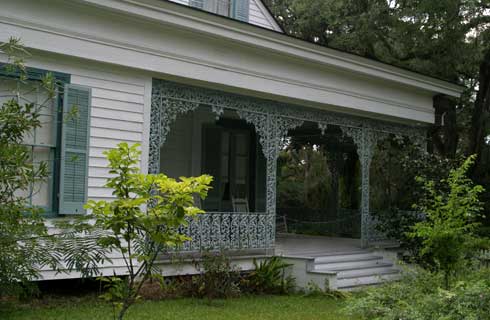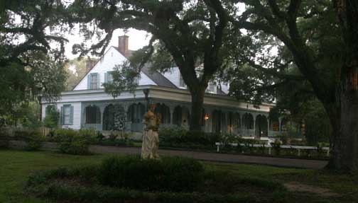 One would never guess that this mansion has such a violent past and so many unseen residents, by looking at the outward/inward appearance. The mansion sits peacefully on top of very old Indian graves and is in the midst of a grove of moss- draped oaks and pink-blossomed crepe myrtle trees. The outside of the mansion sports wide verandas adorned with the lacy style of wrought-iron, and plenty of porch rockers. The backyard has a small pond, with an island and a gazebo, complete with chairs.