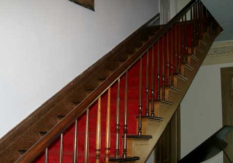 4) The Ghost of William Winter – William Winter was the lawyer-husband of Sarah, one of the Sterling’s 9 children. Sarah & William lived in the mansion from 1860 – 1871. William was shot in the chest by an unknown man as he came out the door. He managed to stagger back into the house and up the stairs, before dying in Sarah’s arms on the 17th step. His unseen presence is heard today as he relives the last moments of his life by thumping/staggering across the entrance way, and up the stairs to the 17th step.
