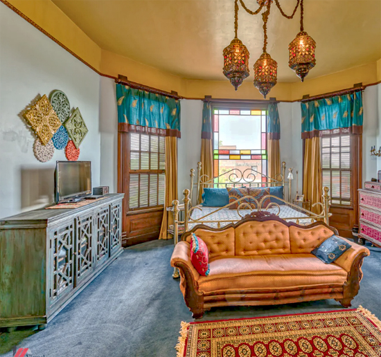 The decorative Victorian Logan Mansion has great street appeal with its lovely design features, including an upstairs Romeo and Juliet Balcony…
