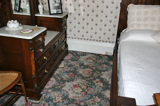 In the guest bedroom, now called The John Morse Room, an indentation of a body on the room’s bed was discovered by a staff member, like someone had just laid on top of it, one month after renovations and refurnishing the home was complete.