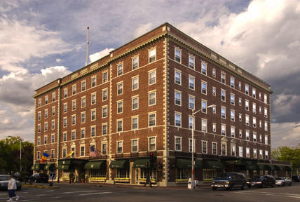 The Hawthorne Hotel can be found in the heart of historic downtown Salem, near the corner of Essex Street and Hawthorne Boulevard. It is in a great location, within walking distance of all the attractions of historic Salem. Hawthorne Boulevard, when it reaches the Hawthorne Hotel block, separates into two streets, with a divider between east and westbound traffic. Hawthorne Boulevard becomes one-way going west, while the other side of the street becomes Washington Square West, giving the Hawthorne Hotel its address, as well as its own street, which merges again into Hawthorne Boulevard.