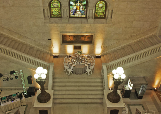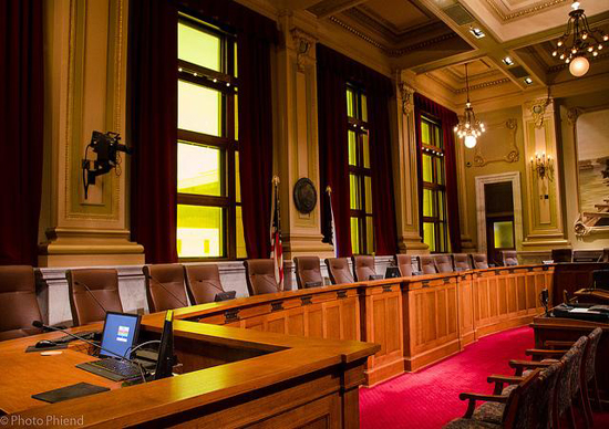 Today, though it is jointly owned by the city and county, is now mostly has city government and agencies housed within its walls. (NOTE: A new, 24 story granite Hennepin County Government Center, located just across the plaza, houses the new county courthouse, located in one of its two towers. An underground tunnel connects Minneapolis City Hall with the Hennepin County Government Center.) Many city departments are located in the castle-like Minneapolis City Hall: Assessor’s Office, City Attorney, City Coordinator, City Clerk’s office CPED, Fire Department, Health and Family Support, The Police Department and Public Works.