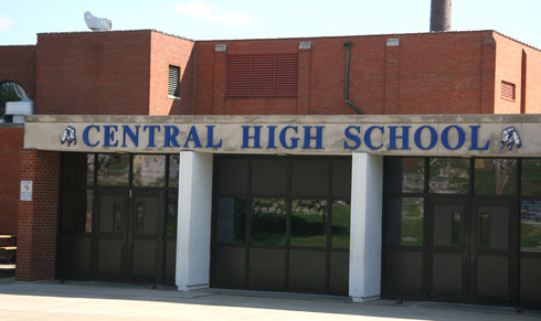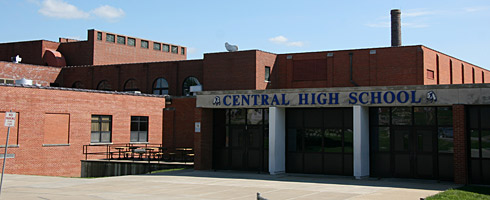 Central High School has a variety of handsome brick buildings, which sit back from Edmond Street. The oldest building is three stories, with handsome Grecian columns in the front. it has been well taken care of over the years, offering a great place for teens to learn and experience a variety of areas of study, and activities.