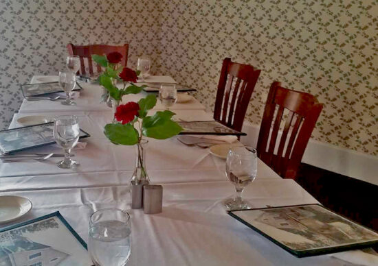 They renovated the inside of the house, changing it from a private home to a public restaurant, yet they kept the old world decor. The upstairs bedrooms were converted to “restaurant seating,” and the antique bathtub found in the ladies room was transformed into a table by a slab of marble on top, where a vase of flowers adds to the vintage decor.