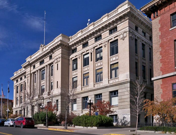 Historically this part of town was the place where the Butte County Courthouse and jail has always stood, from the very beginning of the town. The original courthouse was a structure that by 1908 was deemed a little too funky and ratty looking for the booming, rich mining town of Butte, so a new, grander courthouse was started in 1910, built upon the same lot where the old one had stood. It was finished by 1912. It was and is one of the West’s most beautiful public buildings, designed in the Beaux Arts style. It cost 482,600 dollars and was financed by public bonds…
